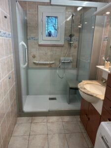 Cette solution permet de moderniser la salle de bain tout en conservant son esthétique, avec une douche sécurisée, confortable et facile d’accès, pensée pour un usage quotidien en toute tranquillité.